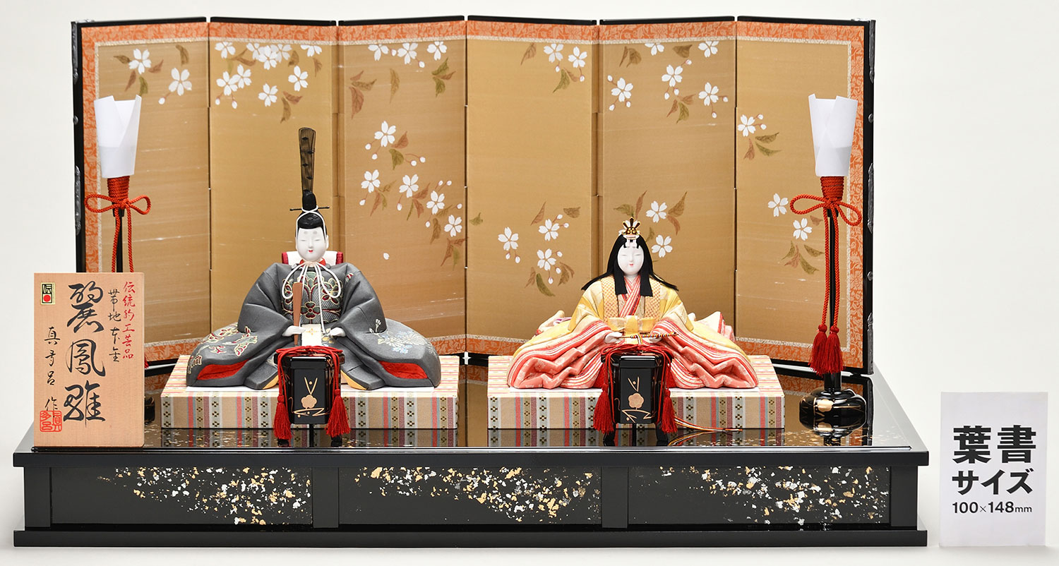 本金衣裳がきらめき、セットが品格を現す。圧巻の作りで見せる親王飾り。