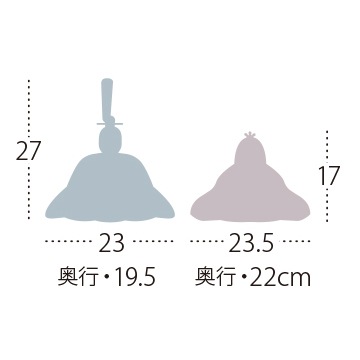 木目込み人形は豊富なサイズ展開が特徴の一つであり、特に近年人気のコンパクトサイズが多く揃っています。