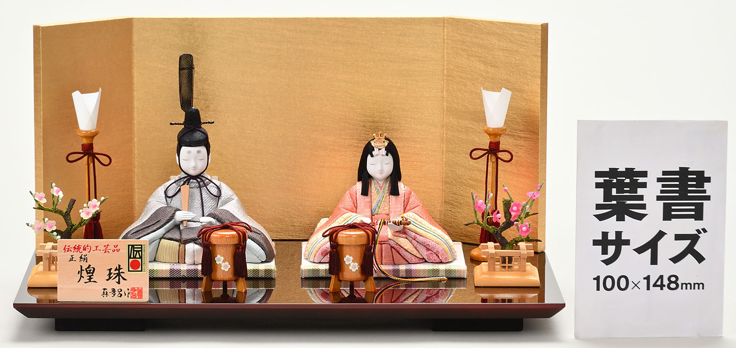 木目込み人形は豊富なサイズ展開が特徴の一つであり、特に近年人気のコンパクトサイズが多く揃っています。