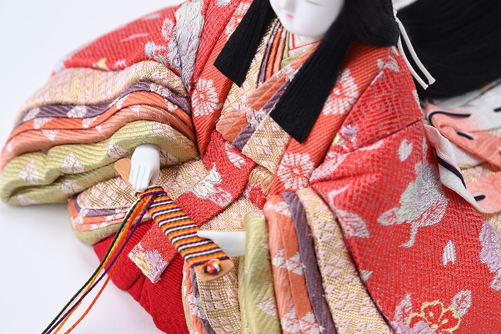 衣裳・桐塑等の素材や塗り加工の回数まで、すべて伝統技法に忠実です。人形のボディには天然の桐素材を使用し、海外製の素材やウレタン等の科学素材は、一切使用していません。