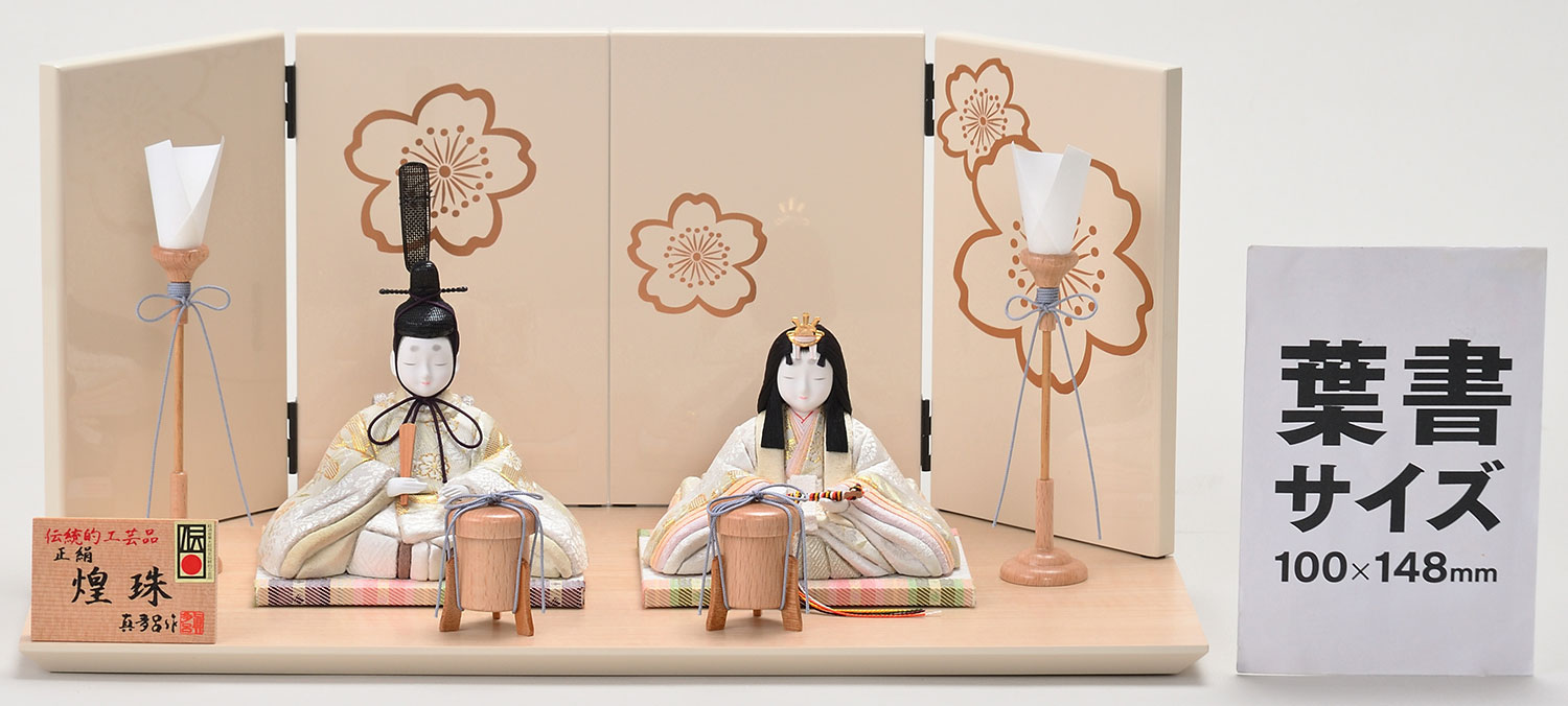 木目込み人形は豊富なサイズ展開が特徴の一つであり、特に近年人気のコンパクトサイズが多く揃っています。