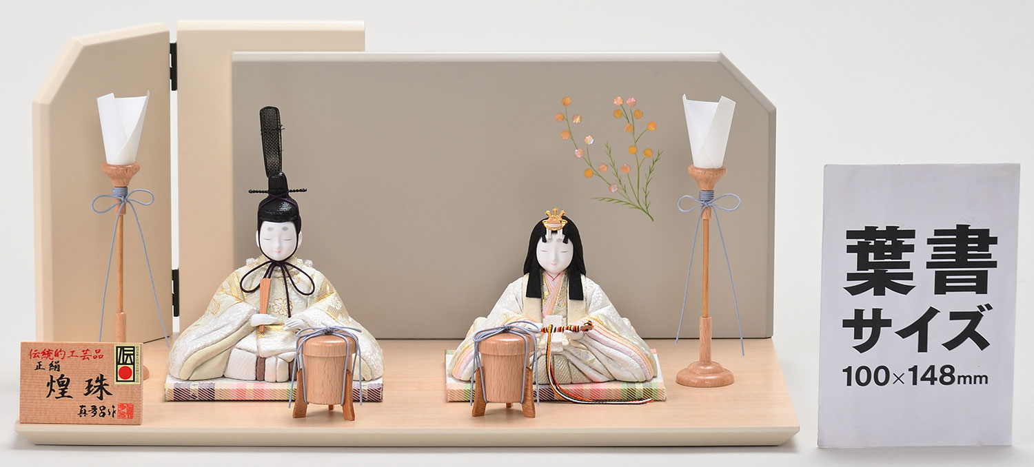 木目込み人形は豊富なサイズ展開が特徴の一つであり、特に近年人気のコンパクトサイズが多く揃っています。