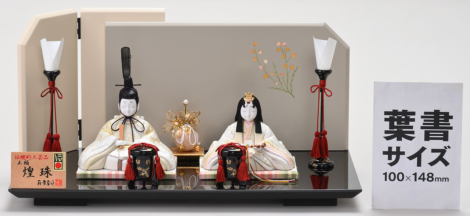木目込み人形は豊富なサイズ展開が特徴の一つであり、特に近年人気のコンパクトサイズが多く揃っています。