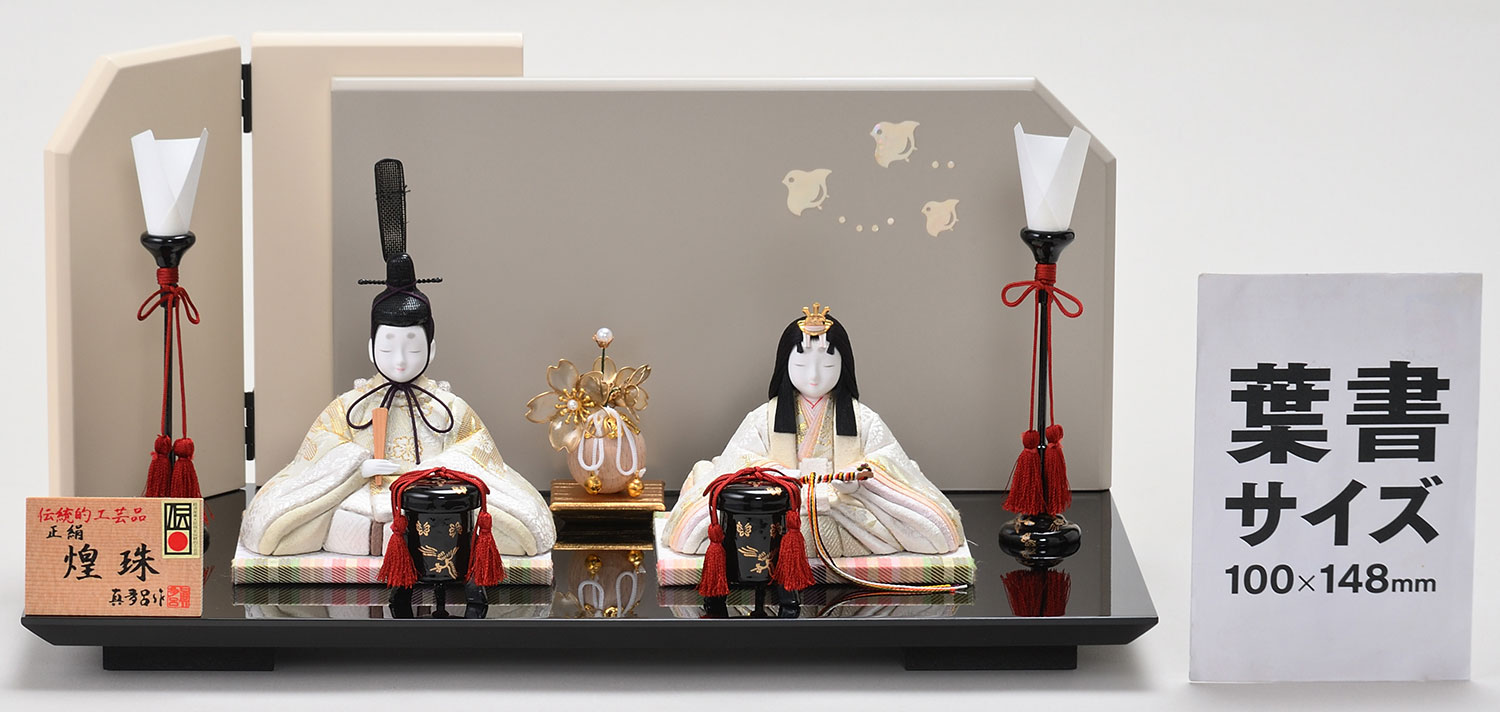 木目込み人形は豊富なサイズ展開が特徴の一つであり、特に近年人気のコンパクトサイズが多く揃っています。