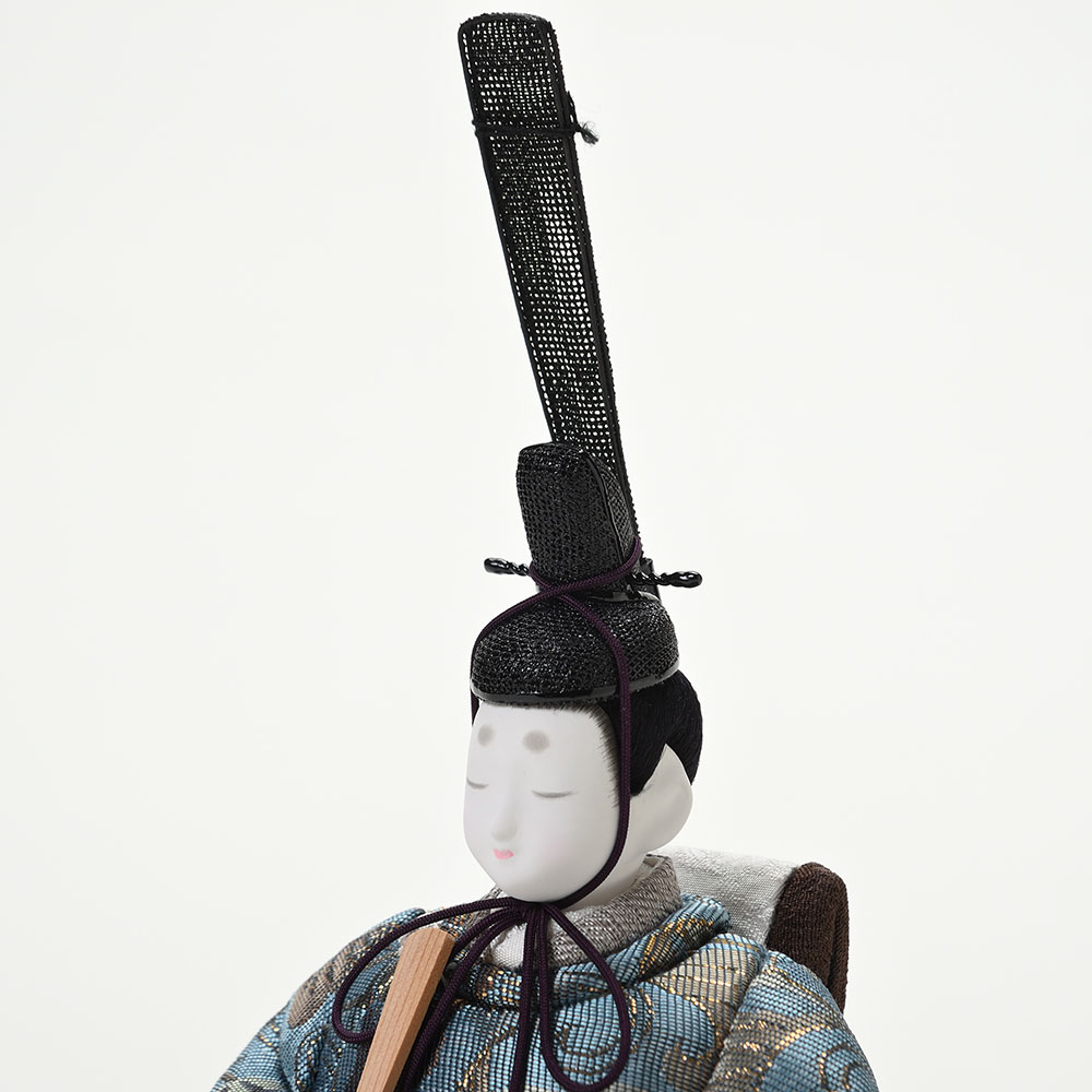 気品あふれる顔立ちと輝く本金装束。高級感ただよう上質な佇まいの親王飾り。
