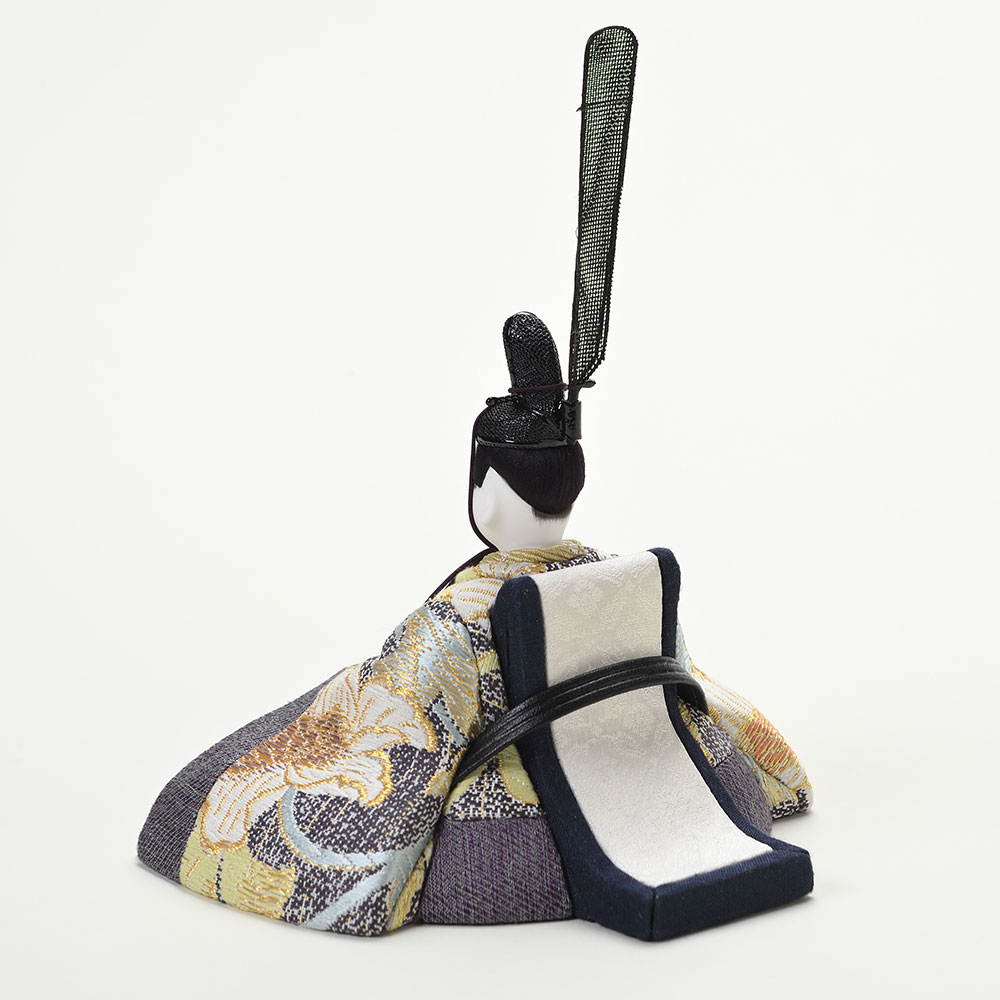 優しくも重厚感のある帯地衣裳をまとった親王です。