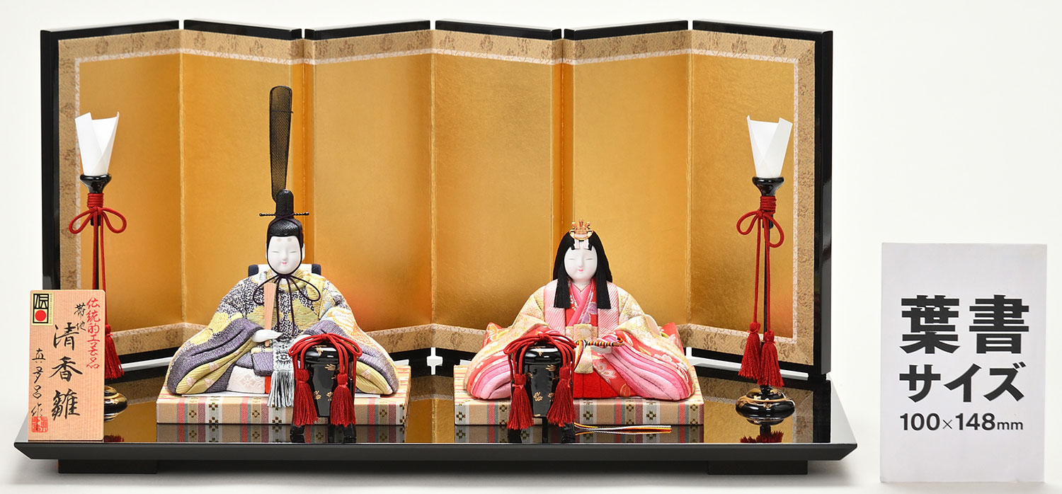 黒塗りの台と金屏風は、シンプルだからこそ雛人形自体の美しさが思い切り映える、昔ながらの古き良きスタイルです。