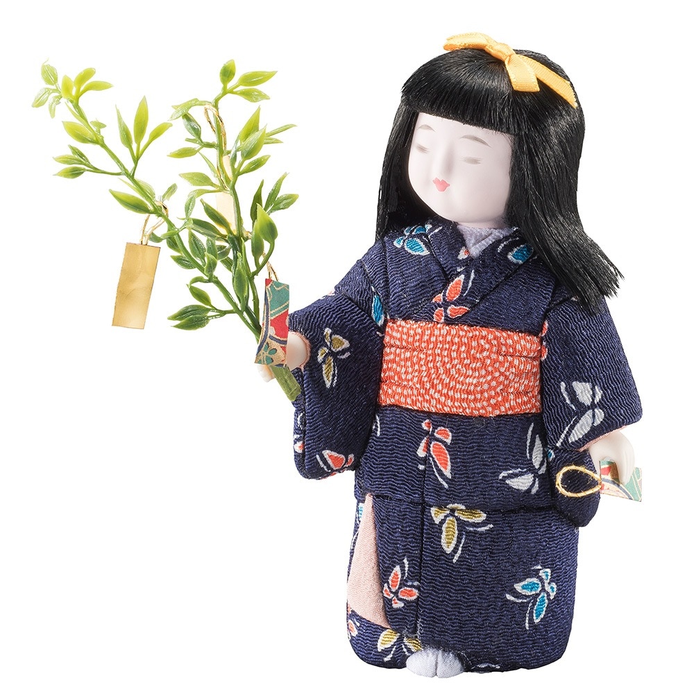 短冊に願いを込める女の子。七夕の風景を切り取った木目込み人形キット。