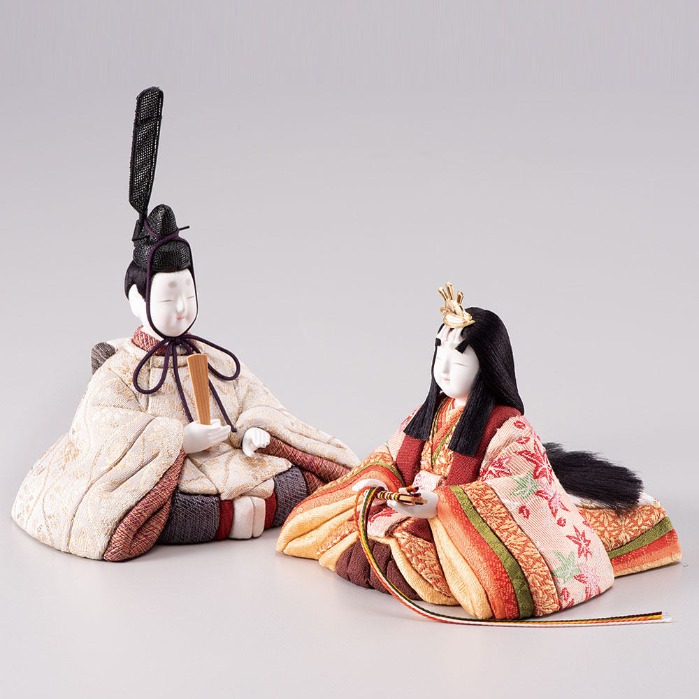 野山が紅葉で染まった時の美しさは、春の花畑に引けをとらぬ美しさがあります。その表現が出来たら、と思い“もみじ”というモチーフを選びました。男雛も女雛も秋の色を意識して、しかし重くなり過ぎないように配色しています。暖かみがありクラシカルな印象になりました。