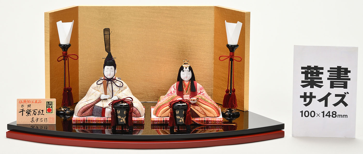 リーズナブルでコンパクトなのに本格的。正絹衣裳をまとった伝統的工芸品の親王飾り。