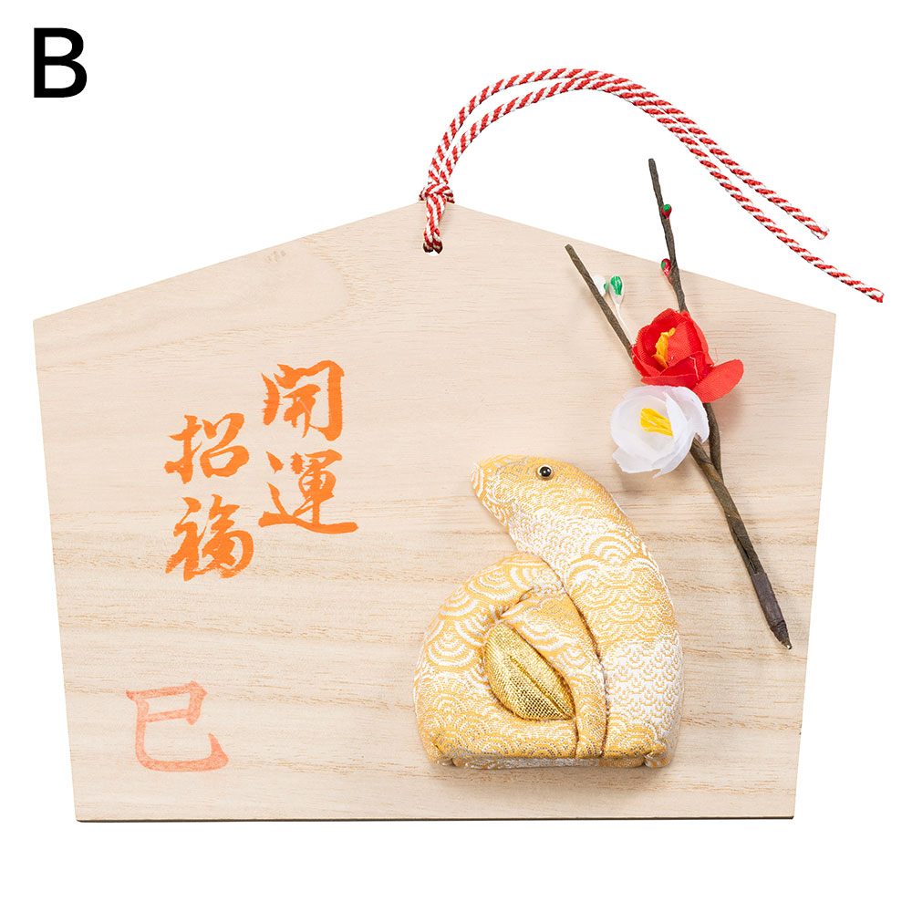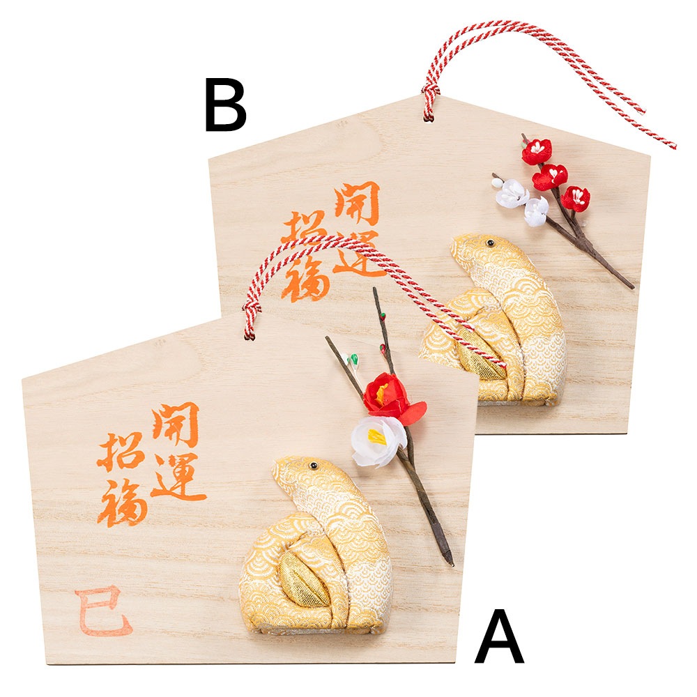 くるりとまとまった金のヘビが、金運を呼び込む開運招福の干支絵馬の人形キット。