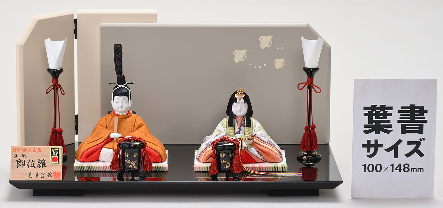 木目込み人形は豊富なサイズ展開が特徴の一つであり、特に近年人気のコンパクトサイズが多く揃っています。