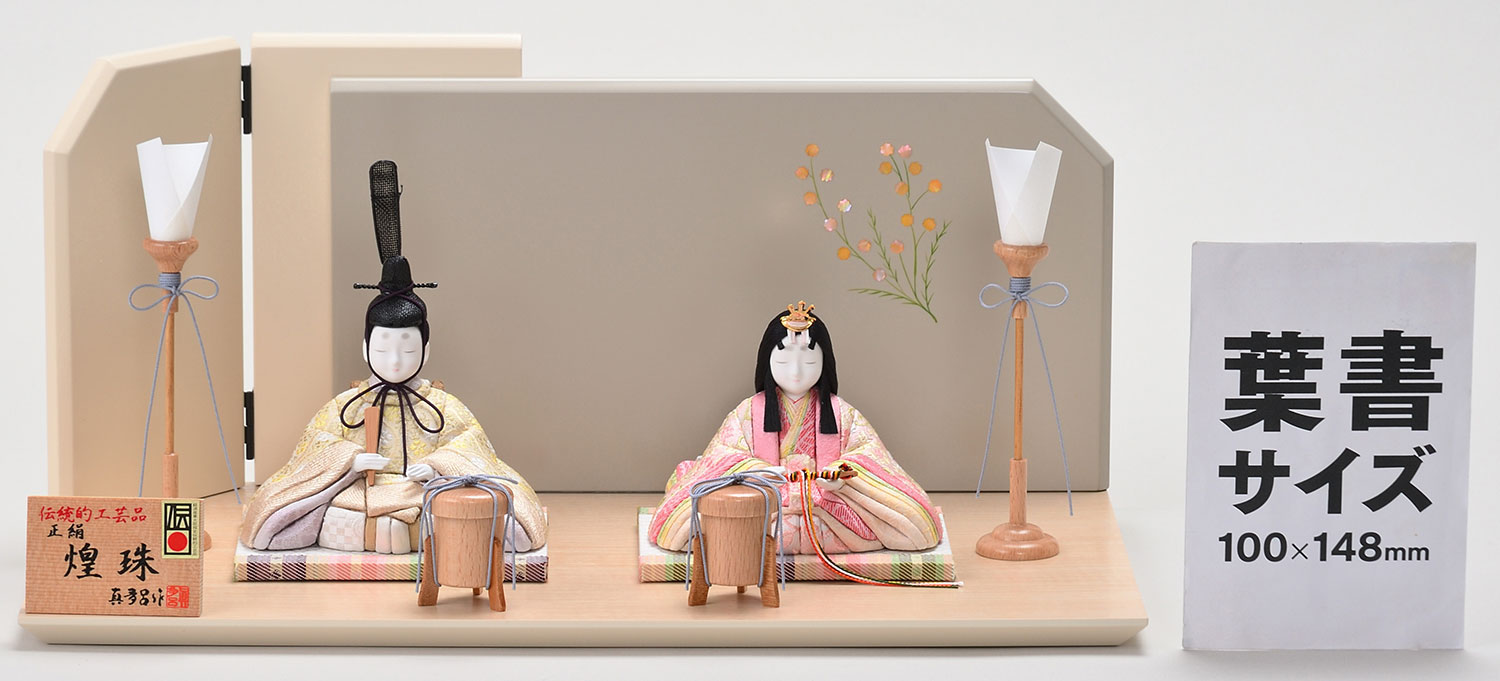 木目込み人形は豊富なサイズ展開が特徴の一つであり、特に近年人気のコンパクトサイズが多く揃っています。